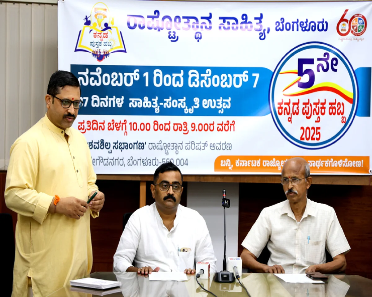ಬೆಂಗಳೂರು: ಕನ್ನಡ ರಾಜ್ಯೋತ್ಸವ ಪ್ರಯುಕ್ತ ರಾಷ್ಟ್ರೋತ್ಥಾನ ಸಾಹಿತ್ಯ ಆಯೋಜಿಸುವ 5ನೇ ವರ್ಷದ ಕನ್ನಡ ಪುಸ್ತಕ ಹಬ್ಬದ ಕುರಿತು ಇಂದು (ಅಕ್ಟೋಬರ್ 27) ರಾಷ್ಟ್ರೋತ್ಥಾನ ಪರಿಷತ್ನ ಕೇಶವ ಶಿಲ್ಪದಲ್ಲಿ ಪತ್ರಿಕಾಗೋಷ್ಠಿ ನಡೆಯಿತು. ಒಟ್ಟು 37 ದಿನಗಳ ಕಾಲ ನಡೆಯುವ ಕನ್ನಡ ಪುಸ್ತಕ ಹಬ್ಬದ ಕುರಿತು ರಾಷ್ಟ್ರೋತ್ಥಾನ ಸಾಹಿತ್ಯದ ವಿಶ್ವಸ್ಥರಾದ ಕೆ.ಎಸ್. ನಾರಾಯಣ್ ವಿವರಣೆ ನೀಡಿದರು.
