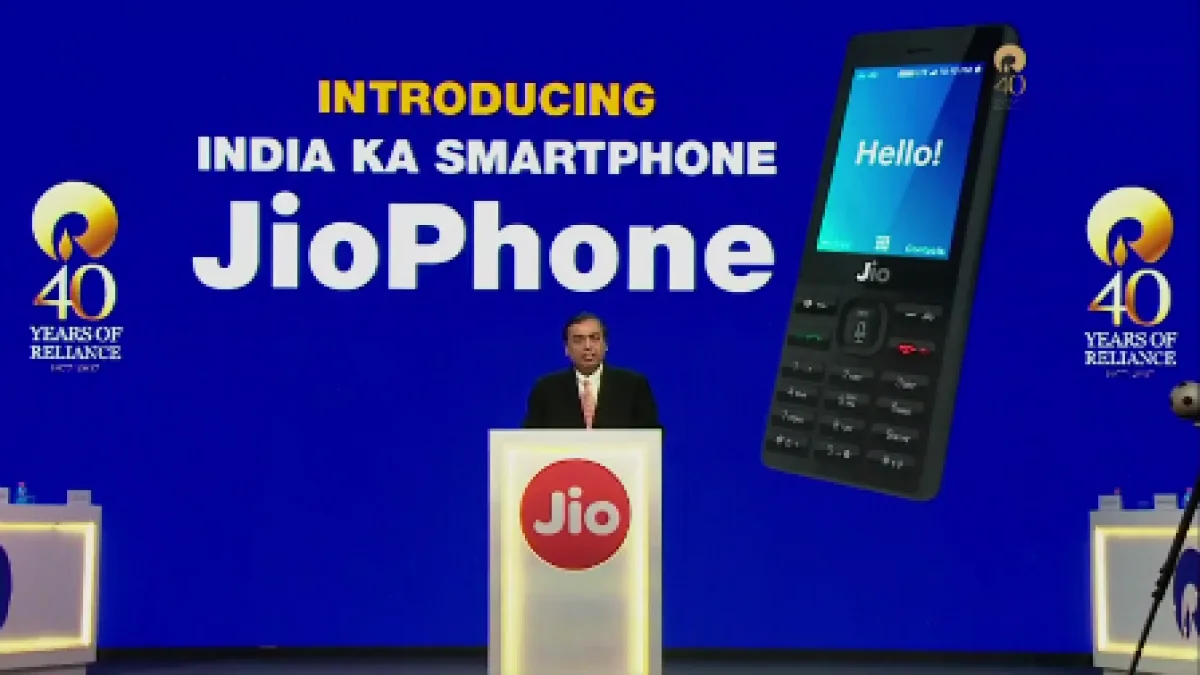 ಮುಂಬೈ: ನಿರೀಕ್ಷೆಯಂತೇ ಮುಕೇಶ್ ಅಂಬಾನಿ ತಮ್ಮ ರಿಲಯನ್ಸ್ ಸಂಸ್ಥೆಯ ವಾರ್ಷಿಕ ಸಭೆಯಲ್ಲಿ ರಿಲಯನ್ಸ್ ಜಿಯೋ ಸ್ಮಾರ್ಟ್ ಫೋನ್ ಬಿಡುಗಡೆ ಮಾಡಿದ್ದಾರೆ. ಅಂಬಾನಿ ಮಕ್ಕಳಾದ ಇಶಾ ಅಂಬಾನಿ ಮತ್ತು ಆಕಾಶ್ ಅಂಬಾನಿ ಜಿಯೋ ಫೋನ್ ಲೋಕಾರ್ಪಣೆ ಮಾಡಿದರು.