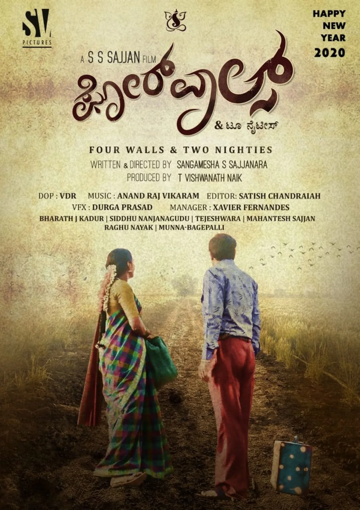 ಗಾಂಧಿನಗರದಲ್ಲಿ ವಿಭಿನ್ನ ಟೈಟಲ್ ಕನ್ ಸೆಪ್ಟ್ ಸಿನಿಮಾಗಳು ಬರ್ತಾನೆ ಇವೆ. ಈ ಲಿಸ್ಟ್ ಗೆ ಮತ್ತೊಂದು ಚಿತ್ರ ಸೇರ್ಪಡೆಯಾಗಿದೆ. ಅದೇ ಫೋರ್ ವಾಲ್ಸ್ & ಟೂ ನೈಟೀಸ್ ಅನ್ನೋ ಚಿತ್ರ. ಟೈಟಲ್ ನಿಂದಲ್ಲೇ ನಿರೀಕ್ಷೆ ಹುಟ್ಟಿಸಿರೋ ಈ ಚಿತ್ರ ಹೊಸ ವರ್ಷಕ್ಕೆ ವಿಭಿನ್ನ ಪೋಸ್ಟರ್ ರಿಲೀಸ್ ಮಾಡಿದೆ. ಎಸ್ ಸಜ್ಜನ ಅಂತ್ಲೇ ಗುರ್ತಿಸಿಕೊಂಡಿರೋ ಸಂಗಮೇಶ ಎಸ್. ಸಜ್ಜನ ನಿರ್ದೇಶನದ ಎರಡನೇ ಸಿನಿಮಾವಿದು. ಮಂತ್ರಂ ಅನ್ನೋ ಸಿನಿಮಾಕ್ಕೆ ಆ್ಯಕ್ಷನ್ ಕಟ್ ಹೇಳಿ ಗೆದ್ದಿರೋ ಎಸ್ ಎಸ್ ಸಜ್ಜನ ಹೊಸ ಪ್ರಯತ್ನ ಸಿನಿಮಾ ಫೋರ್ ವಾಲ್ಸ್ & ಟೂ ನೈಟೀಸ್.