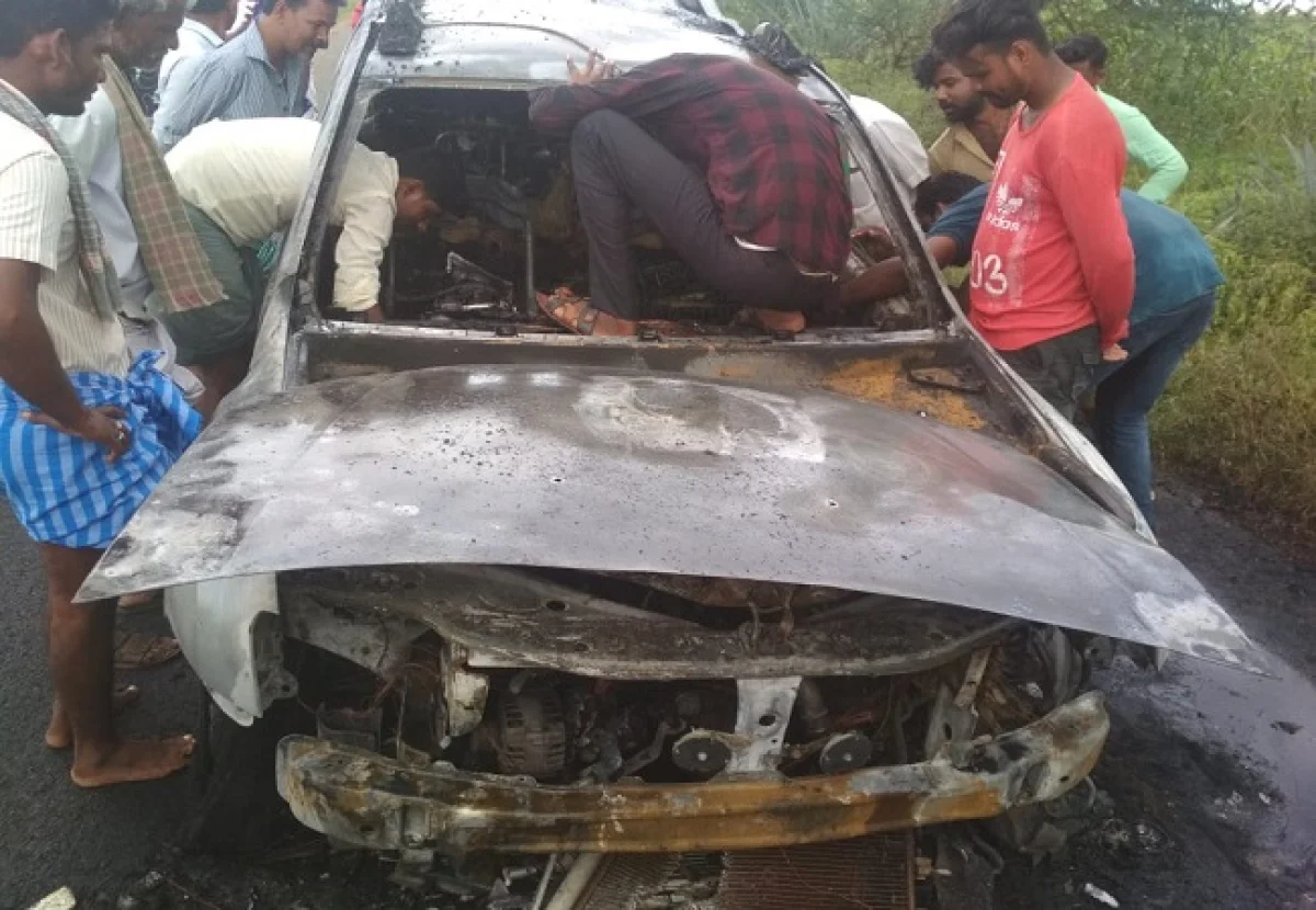ವಿದ್ಯುತ್ ಶಾರ್ಟ್ ಸರ್ಕ್ಯೂಟ್ ನಿಂದ ಹೊತ್ತಿ ಉರಿದ ಡಸ್ಟರ್ ಕಾರ್ ಸುಟ್ಟು ಕರಕಲಾಗಿದೆ.