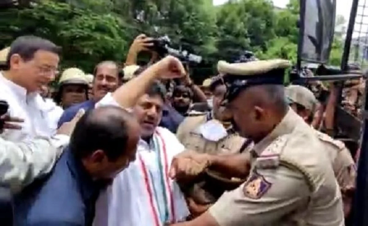 ಪ್ರತಿಭಟನಾಕಾರರು ರೇಸ್ ಕೋರ್ಸ್ ರಸ್ತೆ ದಾಟದಂತೆ ಪೊಲೀಸರು ಬ್ಯಾರಿಕೇಟ್ಗಳನ್ನು ಅಳವಡಿಸಿದರು. ಈ ವೇಳೆ ಬ್ಯಾರಿಕೇಟನ್ನು ಮುರಿದು ನುಗ್ಗಲು ಯತ್ನಿಸಿದ ಕಾಂಗ್ರೆಸ್ ಕಾರ್ಯಕರ್ತರನ್ನು ಪೊಲೀಸರು ವಶಕ್ಕೆ ಪಡೆದರು. ಈ ವೇಳೆ ಕಾರ್ಯಕರ್ತರು ಹಾಗೂ ಪೊಲೀಸರ ನಡುವೆ ತಳ್ಳಾಟ, ನೂಕಾಟ, ವಾಗ್ವಾದ ನಡೆಯಿತು.