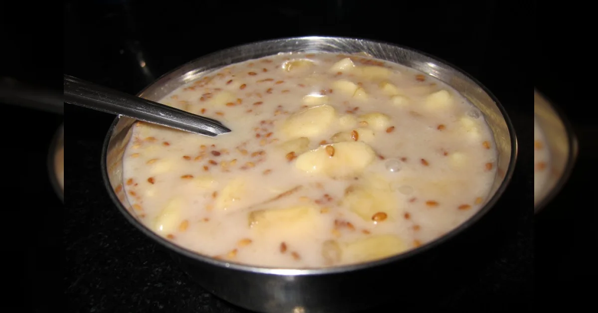 ಬಾಳೆಹಣ್ಣನ್ನು ಚಿಕ್ಕ ಬಿಲ್ಲೆಗಳಾಗಿ ಕತ್ತರಿಸಿಕೊಳ್ಳಿ. ಇದಕ್ಕೆ ಬೆಲ್ಲ ತುರಿದು ಒಂದು ಗಂಟೆ ಬಿಡಿ. ಬೆಲ್ಲ ಬಾಳೆಹಣ್ಣಿನೊಂದಿಗೆ ಸಂಪೂರ್ಣವಾಗಿ ಕರಗಿ ಮಿಕ್ಸ್ ಆದ ಮೇಲೆ ಕಾಯಿ ಹಾಲು ತಯಾರಿಸಿ ಸೇರಿಸಿ. ಇದಕ್ಕೆ ಸ್ವಲ್ಪ ಏಲಕ್ಕಿ ಪುಡಿ ಮತ್ತು ಎಳ್ಳನ್ನು ಫ್ರೈ ಮಾಡಿ ಹಾಕಿ. ಇದು ಘಮ ಕೊಡುತ್ತದೆ. ಚೆನ್ನಾಗಿ ತಿರುವಿ ನಂತರ ಕಪ್ ನಲ್ಲಿ ಹಾಕಿಕೊಡಿ. ಆರೋಗ್ಯಕ್ಕೂ ಉತ್ತಮ, ರುಚಿಕರ ಕೂಡಾ.
