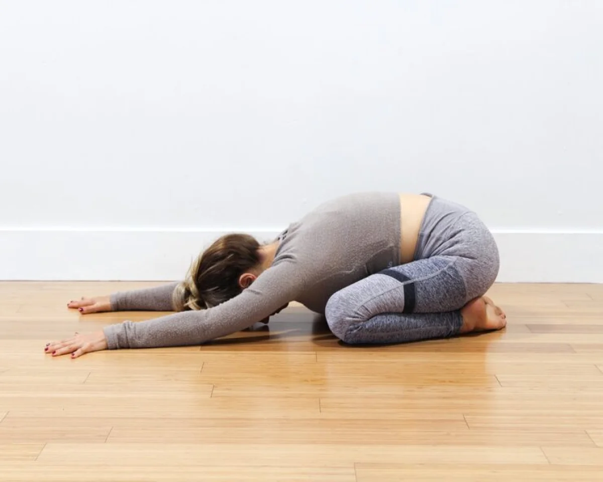 -ಒಂದು ಸಮತಲವಾದ ನೆಲದ ಮೇಲೆ ಮೊಣಕಾಲಿನ ಮೇಲೆ ಕುಳಿತು ಸೊಂಟವನ್ನು ಮುಂದಕ್ಕೆ ಚಾಚಿ. ಈಗ ನಿಮ್ಮ ಹಣೆ ಮತ್ತು ತೋಳುಗಳು ನೆಲಕ್ಕೆ ತಾಕಿರಬೇಕು.